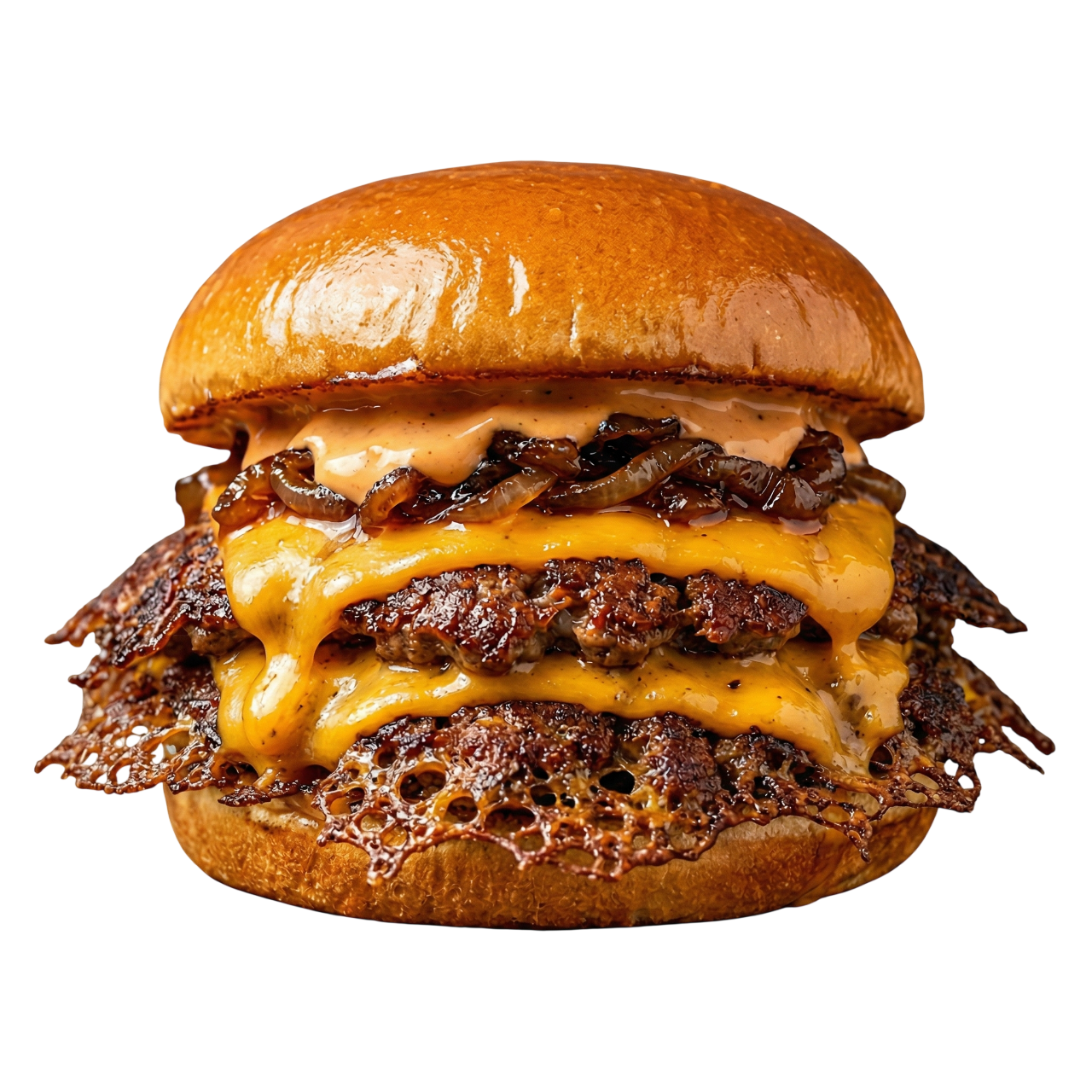 Pain brioché, steak de 65g, cheddar, cornichons, sauces